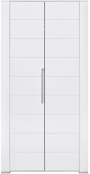 En praktiskt garderob i matt vit lack med integrerade handtag i aluminium. Garderoben är inredd med en klädstång och ett hyllplan ovanför så du enkelt kan hålla ordning på dina möbler.