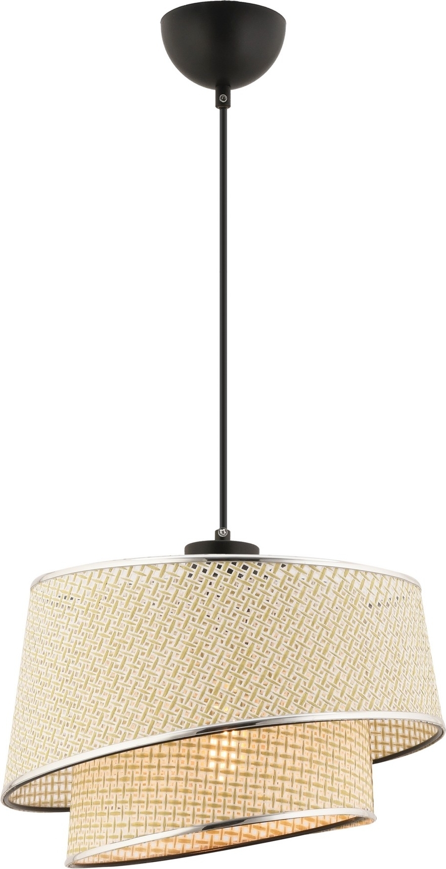 Taklampa av metall och tyg.