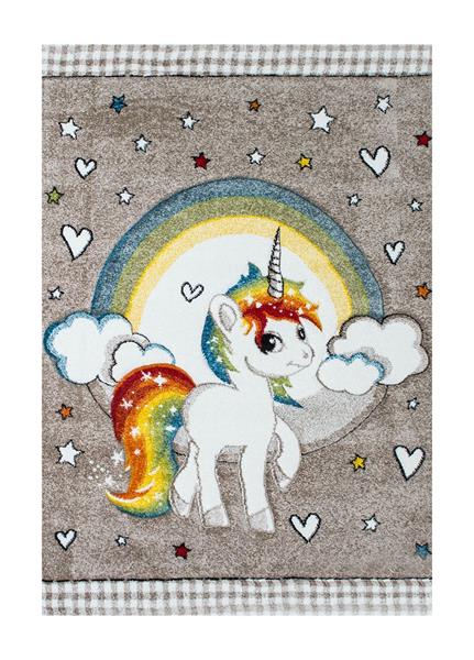 Weldon är en frisématta som har en sandfärgad botten med matchande langettering. Mattan pryds av en vit enhörning som har en färgglad man och svans i regnbågens alla färger. Enhörningen omges av små hjärtan och vita moln.