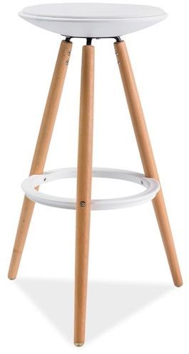 En härlig barstol med en modern design. Underredet är tillverkat av massiv bok med ett praktiskt fotstöd i plast. Sitsen är tillverkad av plats och är klädd med ett mycket behagligt konstläder för maximal komfort.