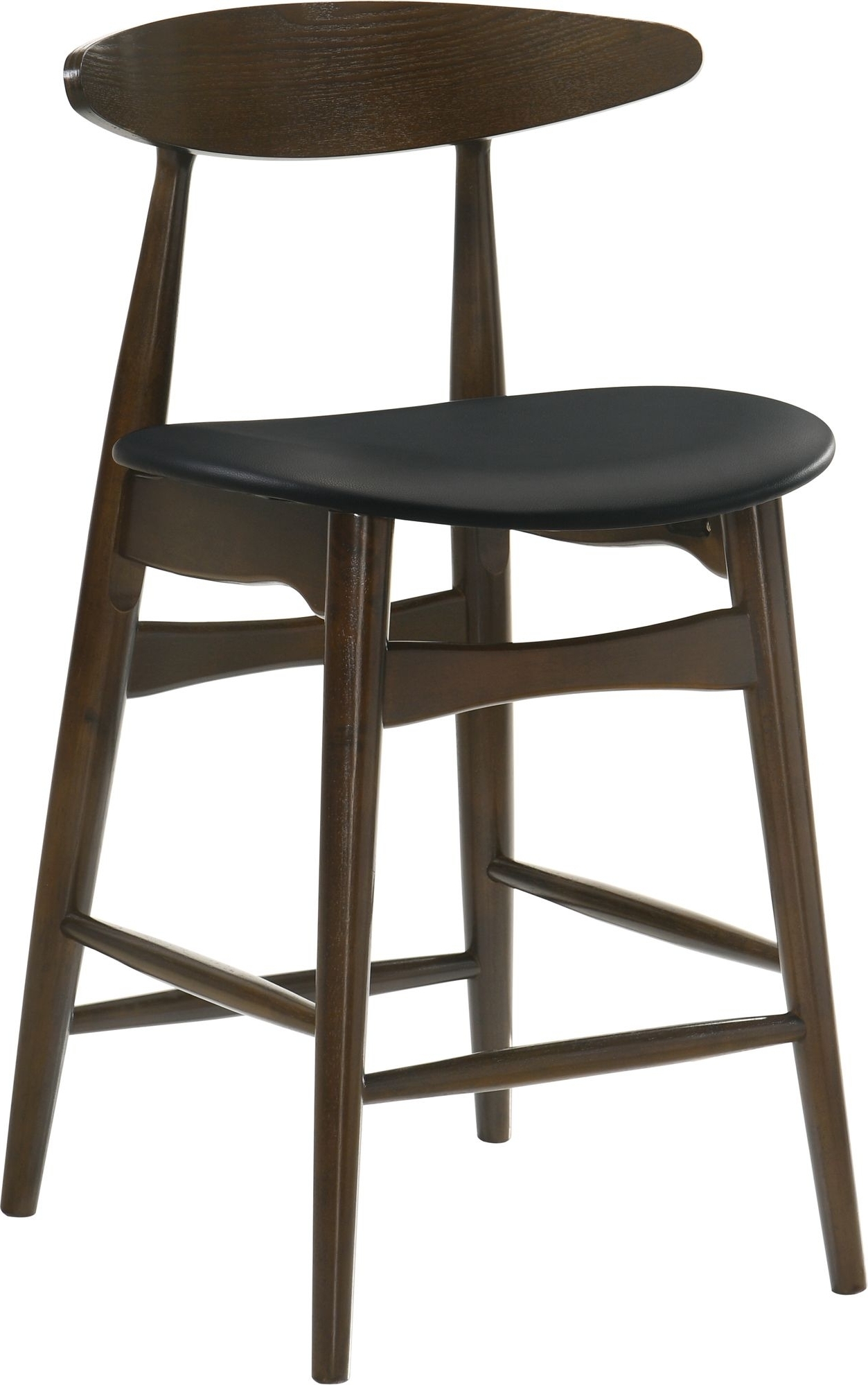 Florence barstol i modern stil med ett underrede i valnöt och en sits av svart PU. Svängt ryggstöd för god komfort. Finns även i whitewash.