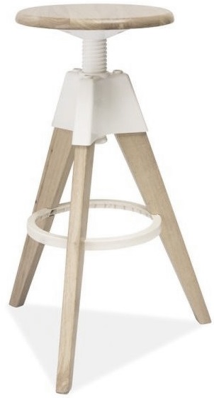 En fin barstol med en klassisk design. Stolen är tillverkad av massiv trä med detaljer i plast. Rustad med ett praktiskt fotstöd och sitsens höjd är justerbar med en lätt snurr funktion.