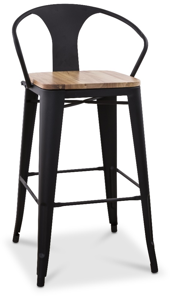 Montreux är en snygg och stilren barstol i industristil, matt svartlackad plåt med sits i massivt lackat trä!