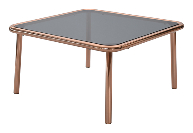 Basic soffbord med glasskiva och kopparfärgade ben från Skånska Möbelhuset. Basic är mycket vacker och stilrent soffbord som garanterat sticker ut.