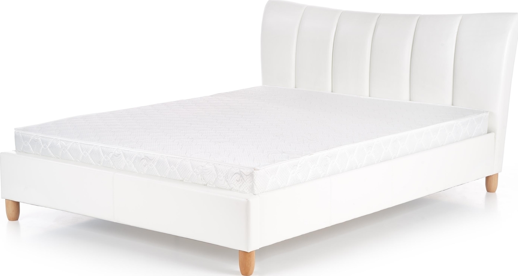 En härlig sängram med en stilren design. Tillverkad i massivt trä med en härlig klädsel i vitt konstläder. Sängramen är anpassad för madrasser med måtten 160x200 cm och passar perfekt in i sovrummet.