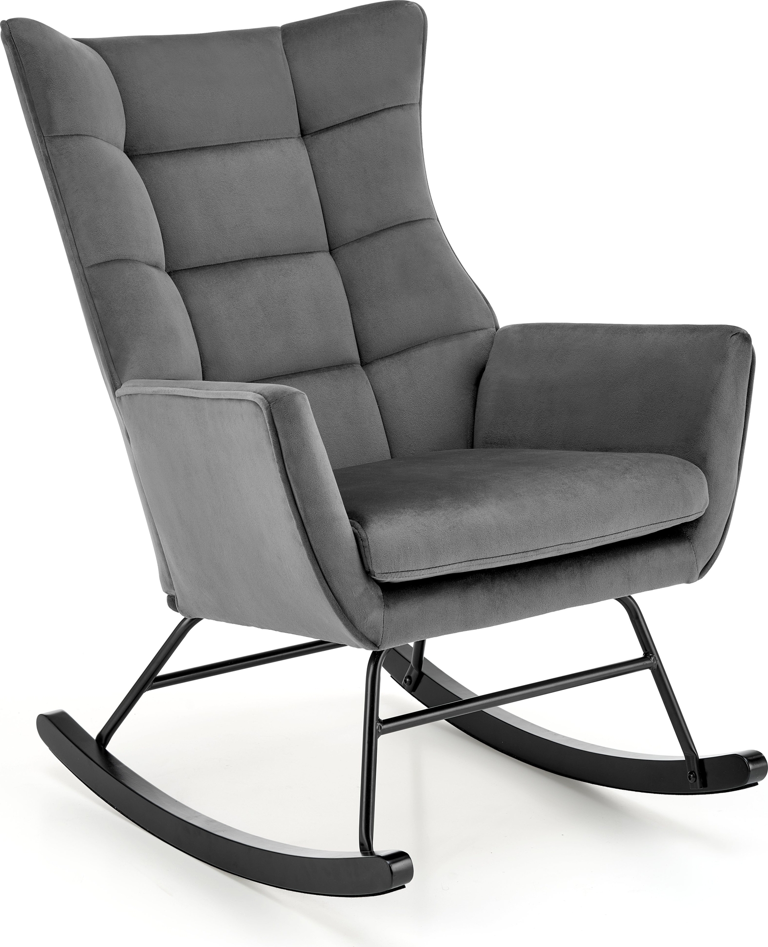 Gungstol med underrede av stål och trä. Klädsel av sammetstyg.
