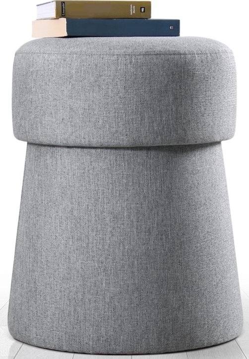Sittpuff av PVC. Klädd med bomull och linne. Stoppning av skum.
