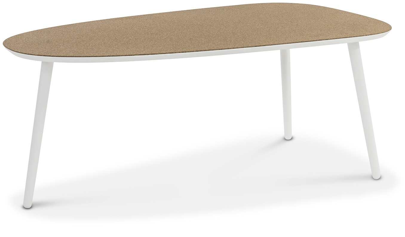 Klassiskt droppformat soffbord. Enkel design och utförande som passar i de flesta miljöer. Korktopp med vitt underrede för ett tidsaktuellt utförande!