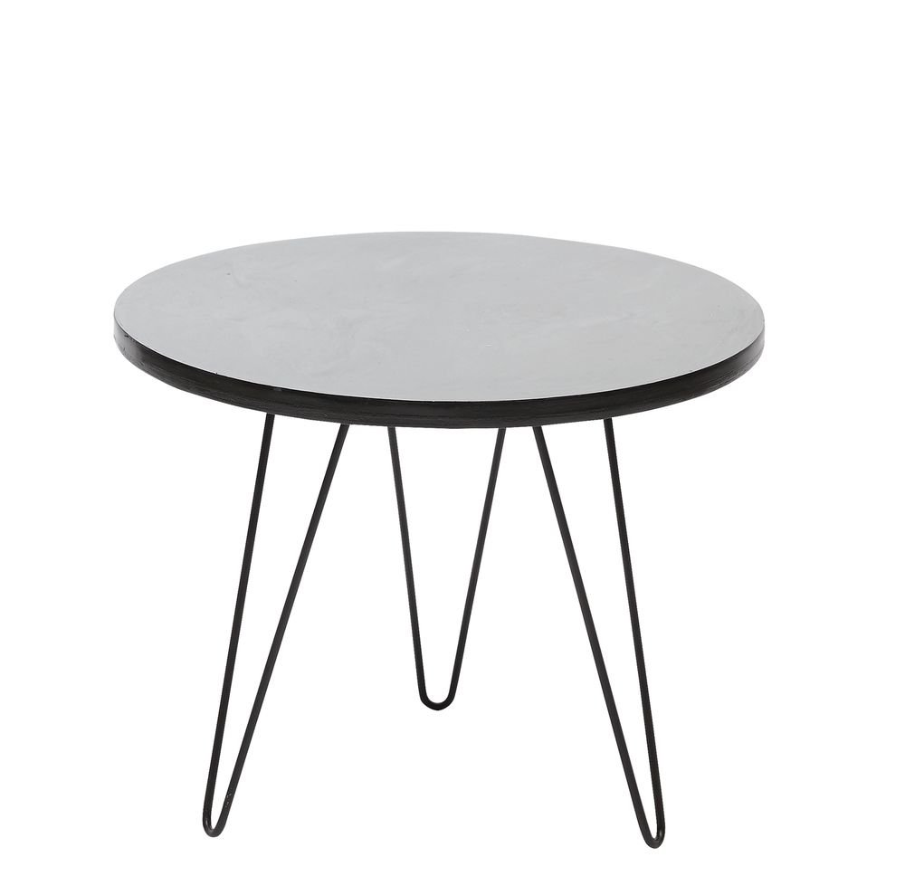 Sidobord med grå bordsskiva, kant i svart som matchar de svarta nätta bordsbenen. Ett bord som utstrålar en stilren och modern känsla. Hållbar toppskiva i betong.