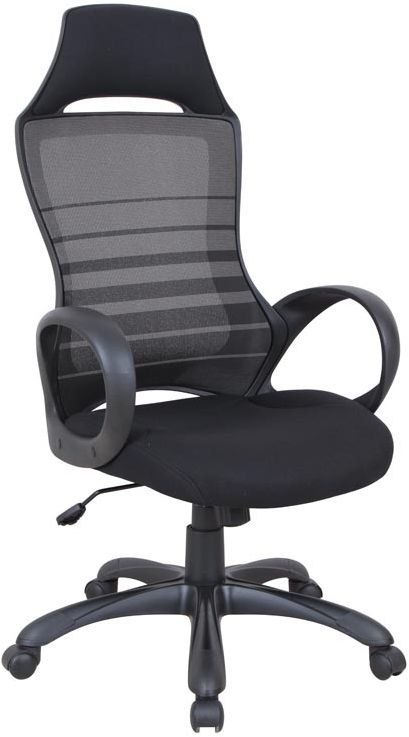 En härligt kontorsstol med en modern design. Tillverkad i svart metall med detaljer i svart plast, och en mycket behaglig klädsel i svart tyg. Höj- och sänkbar sits med hjälp av spaken under sitsen och lätt att förflytta tack vare hjulen på stjärnfoten.