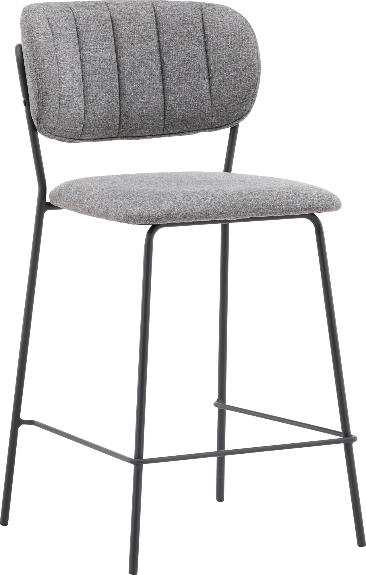 Möblera hemmets hjärta modernt, bekvämt och tidlöst med en iögonfallande barstol i stilren utformning! Den här barstolen har en helklädd design med lätt rundad rygg och sits i grått tyg med snygga dekorsömmar och stolsbenen är smala i svart stål med integrerat fotstöd. Skapa en inbjudande och trivsam look runt ditt barbord och njut av härliga måltider tillsammans!