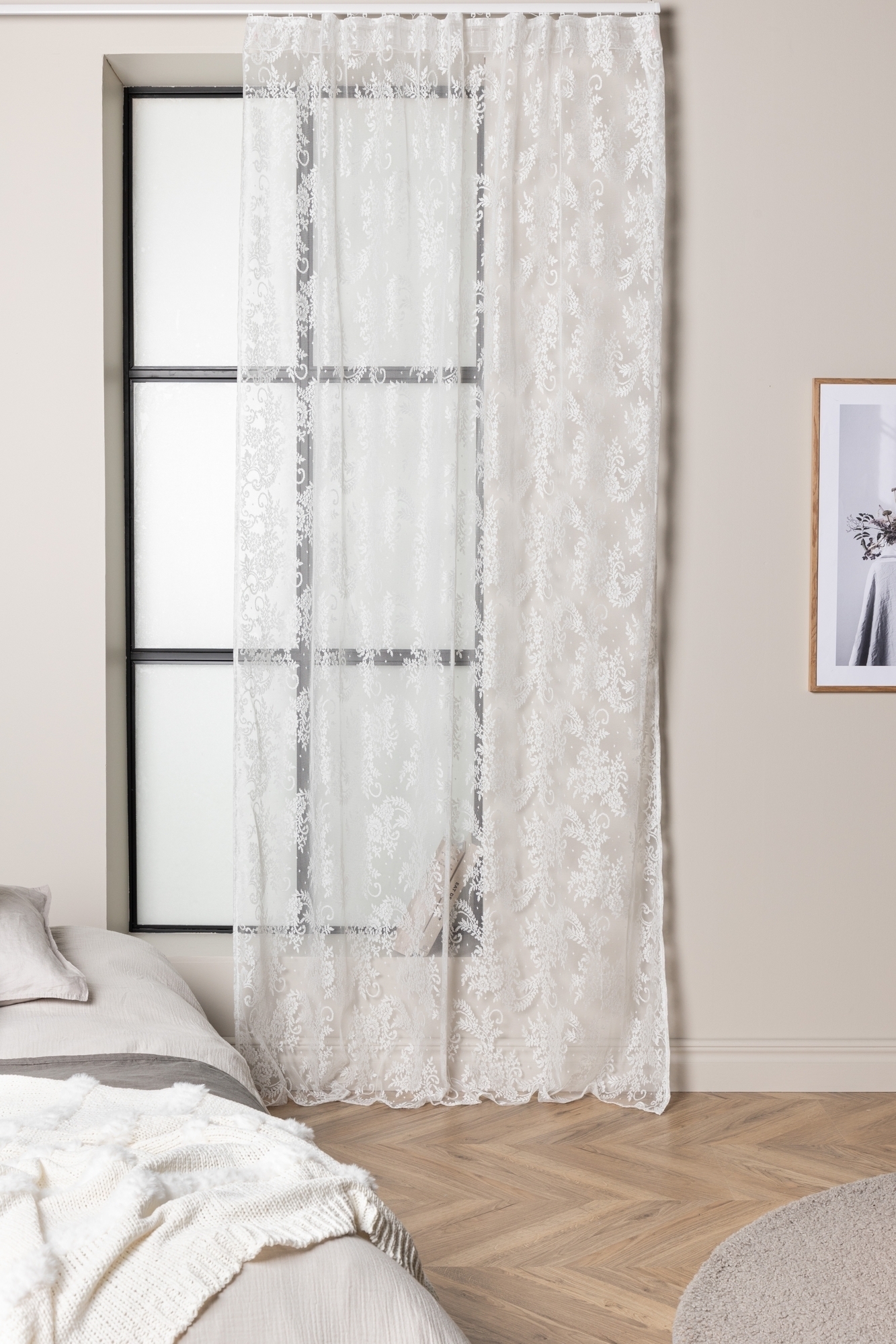 Gardinlängd i ett skirt polyestermaterial med spets.