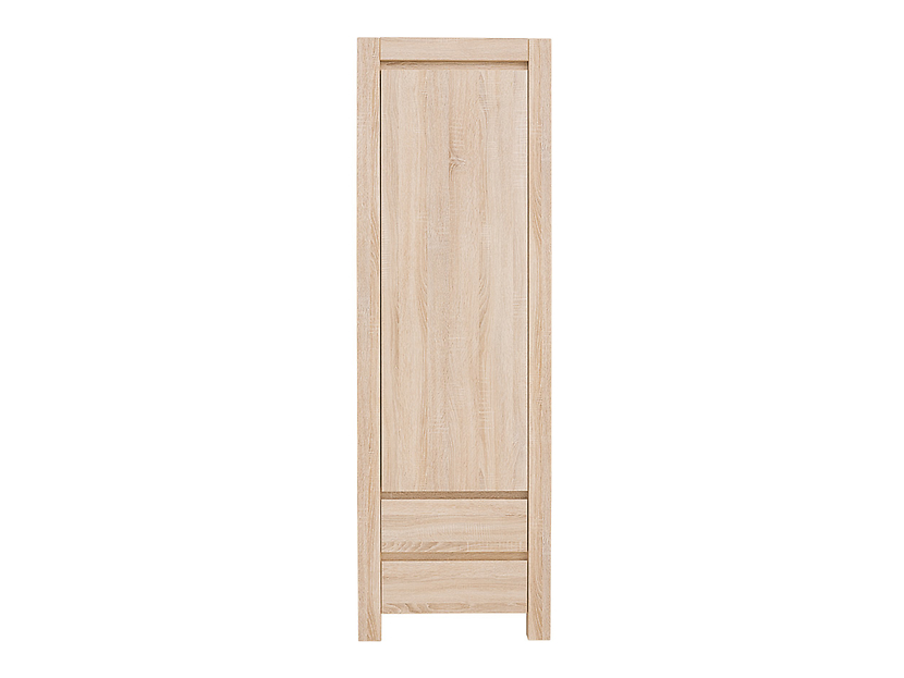 En stilren garderob i ljus ekimitation från möbelserien Benny som har tagit sin inspiration av naturen. Den är försedd med en dörr och två små men rymliga lådor undertill med integrerade handtag.