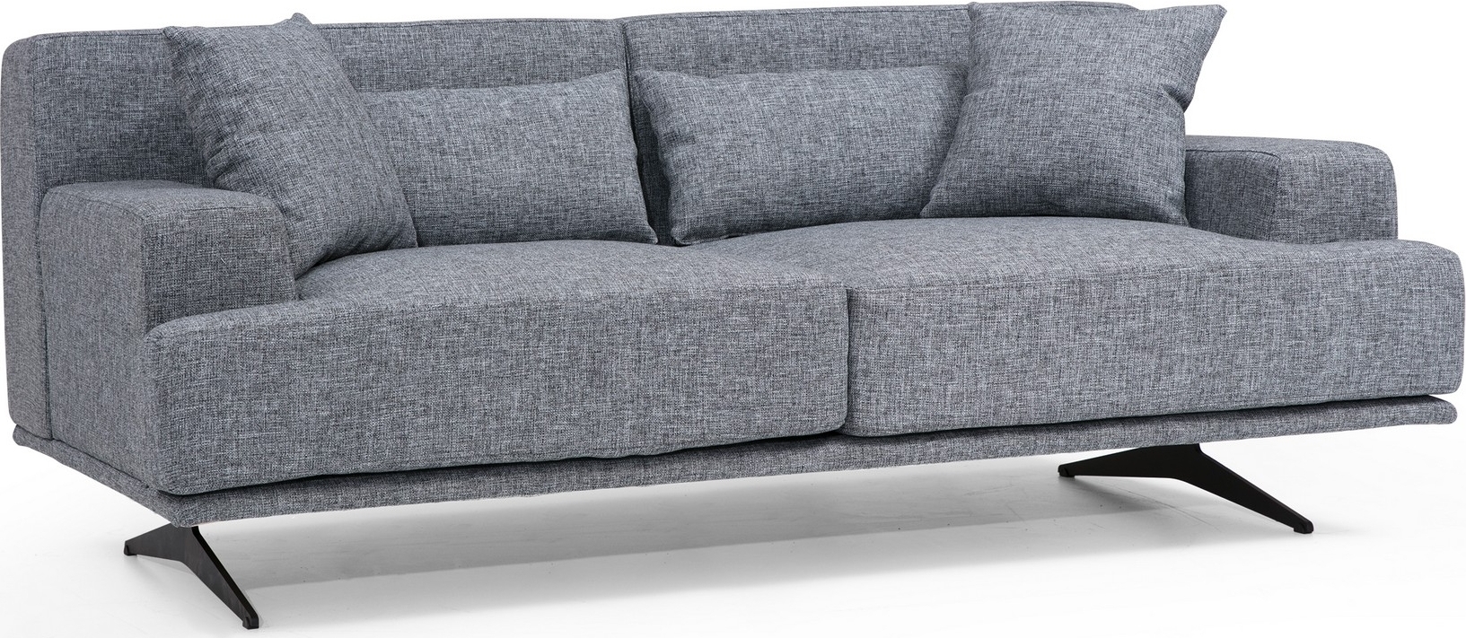 Soffa av bokträ med ben av metall och klädsel av polyester. Soffan har fasta ryggdynor, löstagbara sittdynor och ett tyg som kan kemtvättas.