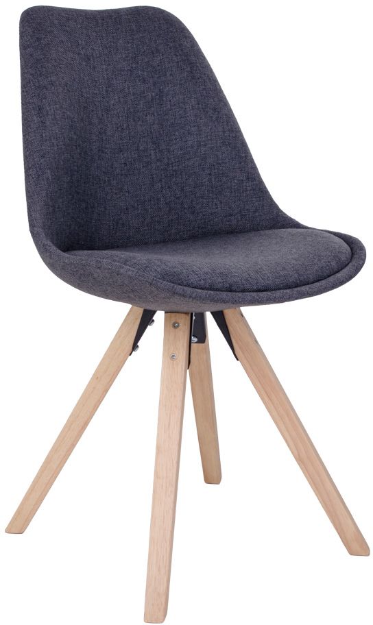 Stol i mörkgrått tyg med ben i naturligt trä.