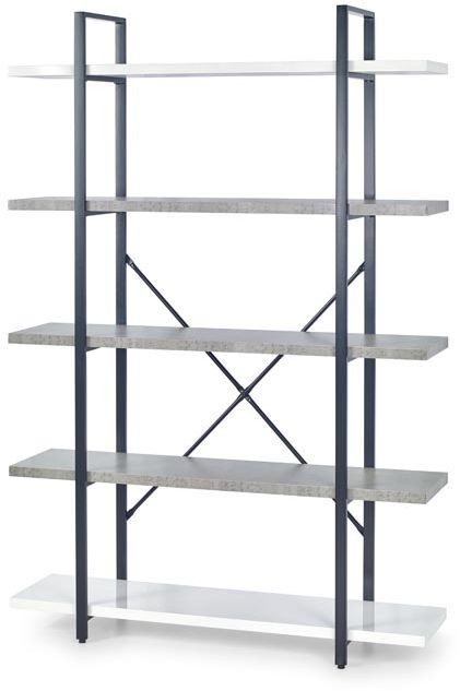 Stilfull bokhylla med en robust design. Ramen är tillverkad i svart metall och de 5 hyllplanen är av vit och betongfärgad MFP (premium träskiva). Hyllan passar perfekt in på flera platser i hushållet och är perfekt för förvaring av diverse prydnadssaker & böcker.