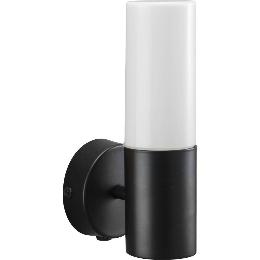 Vägglampa i minimalisk design med opalglas och metallstomme i mattsvart. Lampan är fuktsskyddad i IP44 klassning och passar bra i badrumsmiljöer. Observera att denna armatur är för fast installation och att det inte medföljer någon separata kontaktdon och anslutningskabel. Rekommenderas att användas ihop med energieffektiva LED ljuskällor med E14 sockel och mindre glashölje, t ex kron eller liten klot.