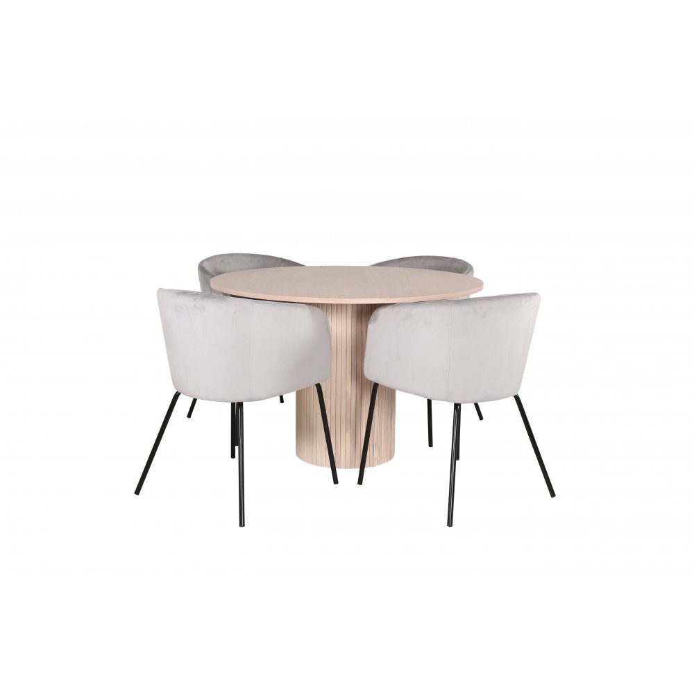 Bianca Matgrupp runt vitputsat matbord med 4 st Berit grå stolar