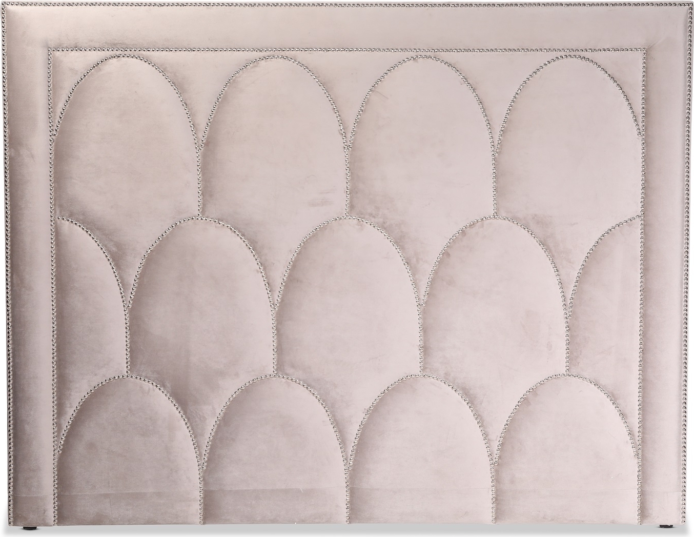 Bianca är en elegant sänggavel klädd i ett gråbeiget sammetstyg av mjuk och behaglig kvalitet. Med sitt exklusiva utförande och dekorativa nitar i kromad metall tillför den en känsla av stil och elegans till sovrummet.