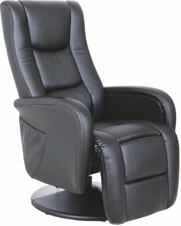 En lyxig reclinerfåtölj med en stilren design. Klädd med ett mjukt och mycket slitstarkt svart konstläder för maximal komfort. Fällbar funktion med både rygg & fotstödet. Fåtöljen har massage- och värmefunktion. Fåtöljen passar perfekt in på flera olika platser i hushållet.