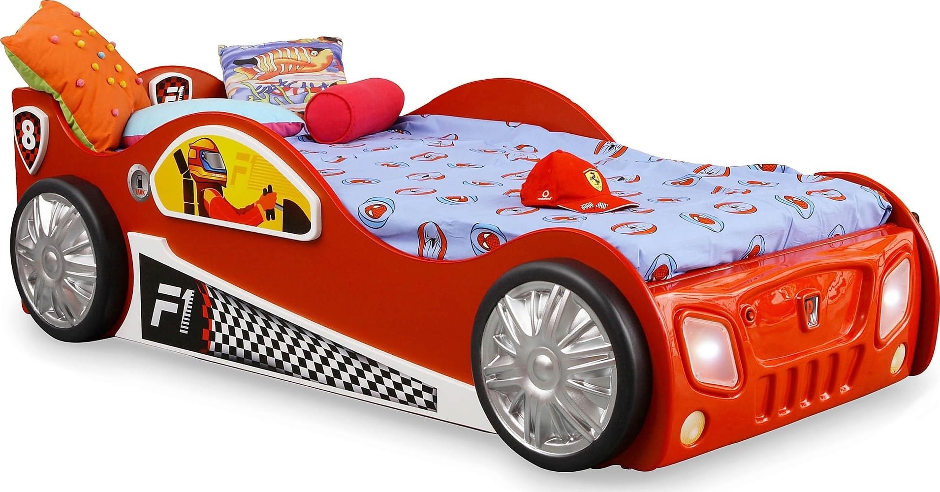 Många bilintresserade barn drömmer om en tur i en F1-bil, låt fantasin flöda hos barnen redan nu. Den här barnsängen med mjuka runda former i MDF är både komfortabel och stilig i barnrummet.