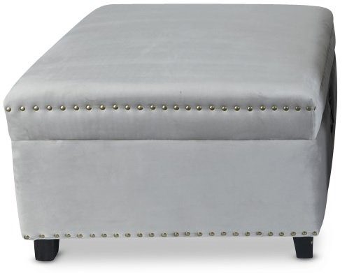 Birmingham 60x60 cm fotpall med förvaring - Beige sammet / Nitar