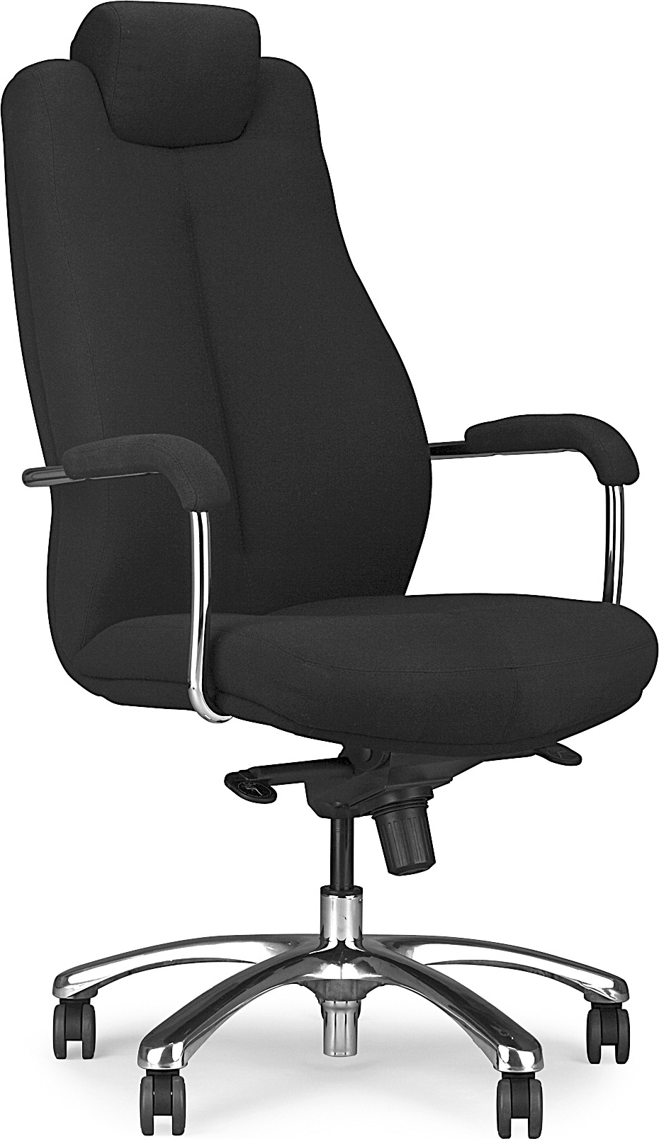 En skön kontorsstol med en modern design. Tillverkad i metall med detaljer i plast och en mycket behaglig klädsel i svart tyg. Sitsen är höj-och sänkbar samt lätt att förflytta med hjälp av hjulen under stjärnfoten.