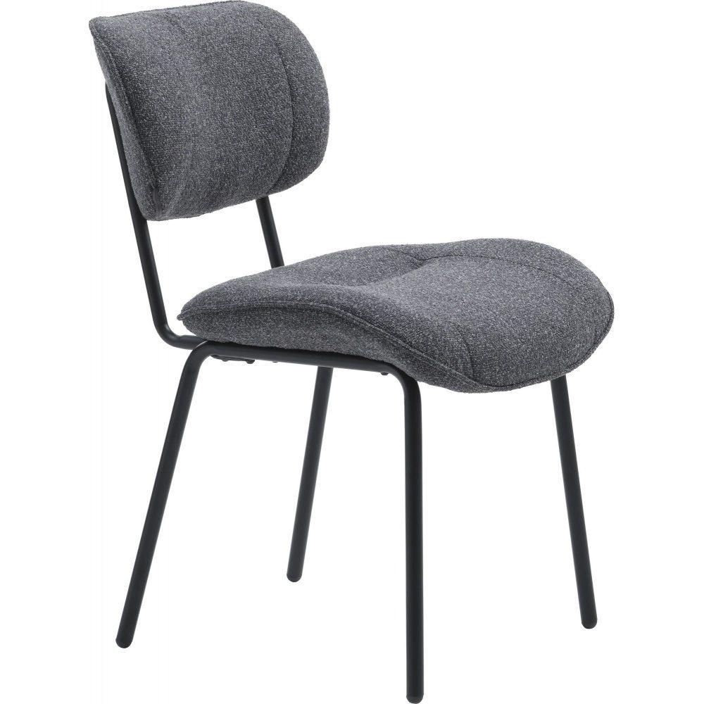 De svarta metallbenen skapar en stark kontrast till den mörkgrå sitsen och ger stolen ett tidlöst utseende. Dess robusta konstruktion och premiummaterial gör den till en långvarig investering för ditt hem.