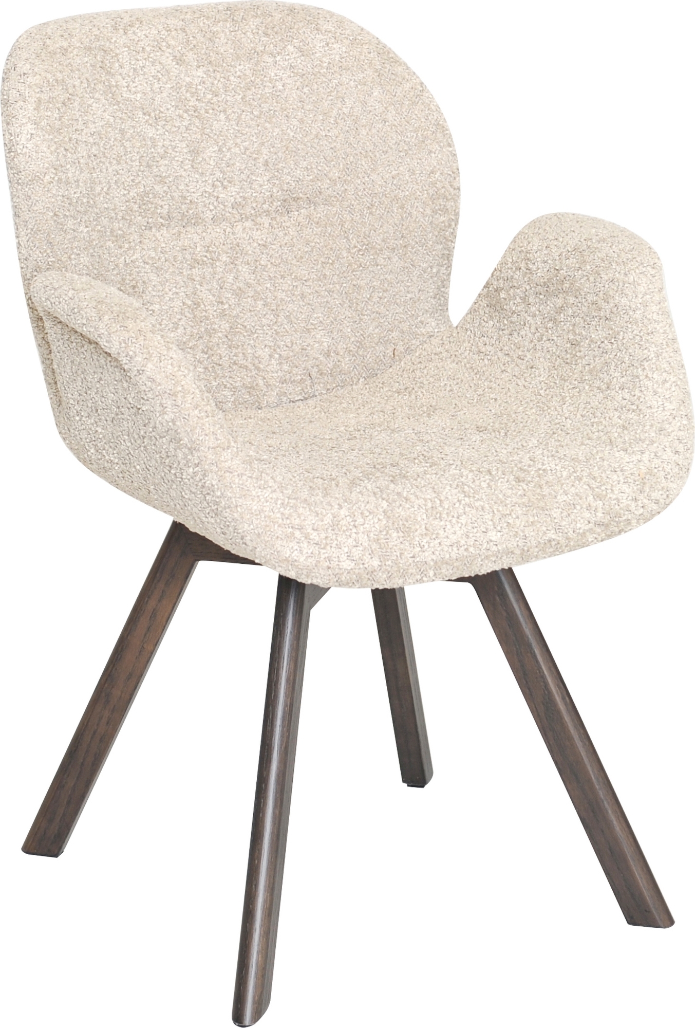 Snurrbar karmstol i beige tyg (AJ3019-11) med brunlackade ekben. Levereras omonterad.