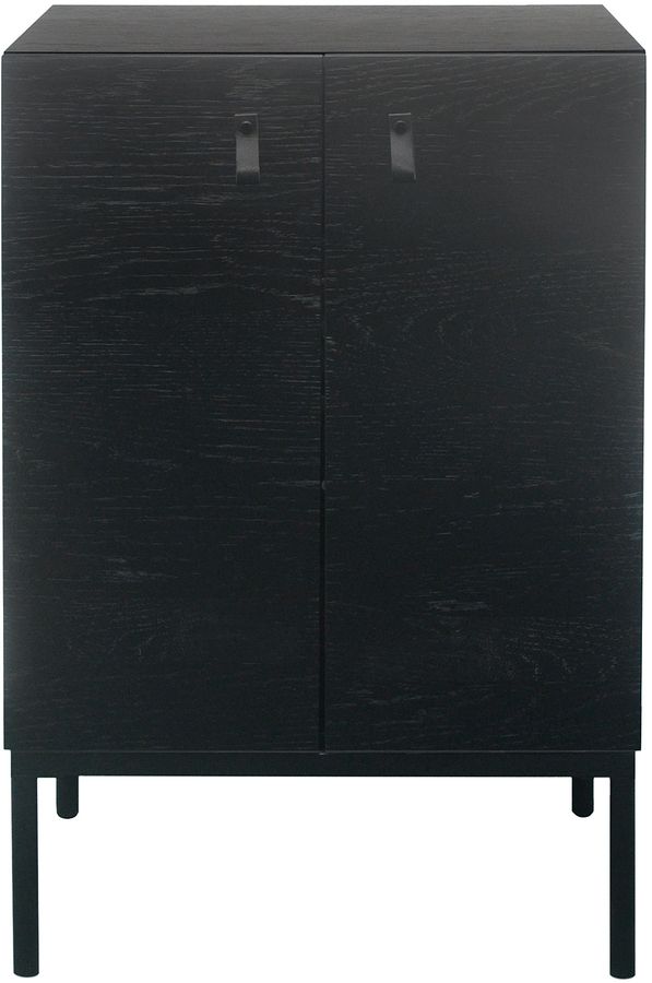 Stilsäkert skåp i svart med två dörrar för förvaring. Stabil med metallben, högt undertill vilket underlättar vid städning. Runda knoppar till handtag. Black finns även som byrå med tre lådor.