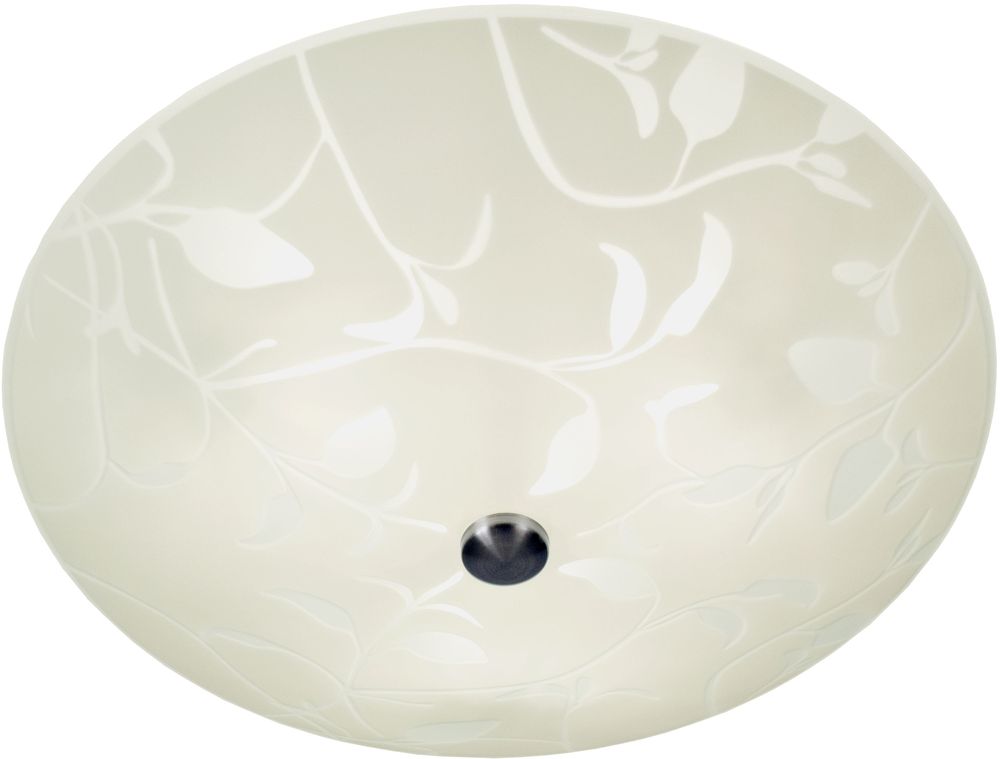 Taklampa i metall och vitt glas med mönster. Monteras lätt i taket.