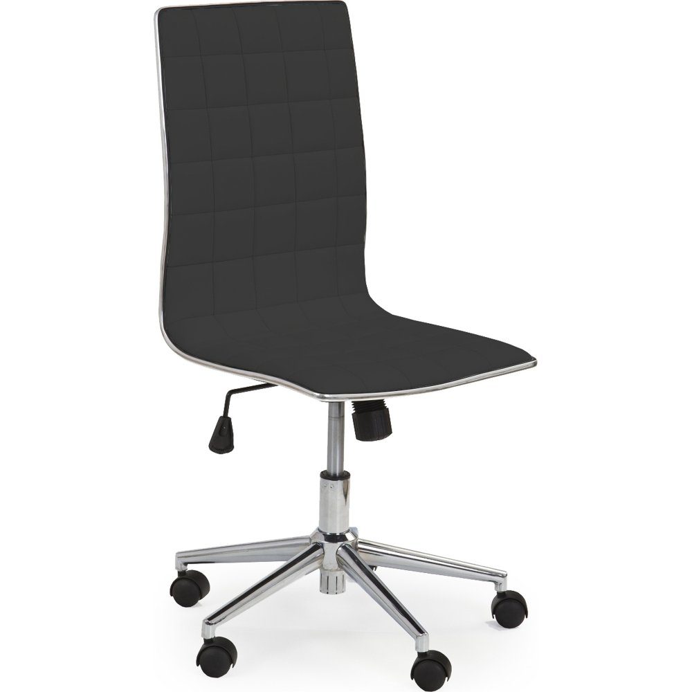 Härlig kontorsstol med en stilren design. Klädd med ett mycket behagligt svart konstläder för maximal komfort. Höj- och sänkbar sits och stolen är lätt flyttbar tack vare hjulen på den kromade stjärnfoten.