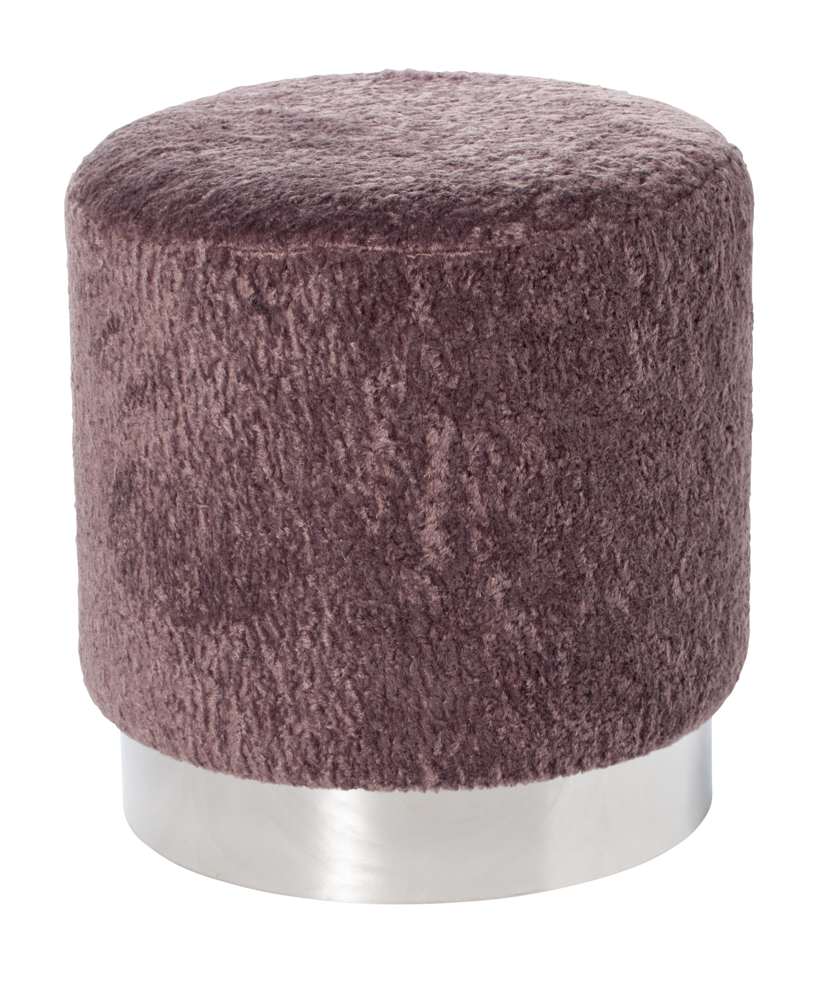 Modernt designad pall med ett härligt välkomnande utseende. Ramen är tillverkad i Furu och plywood, och är klädd med en skön & härlig fuskpäls. Själva pallens fot är av metall.