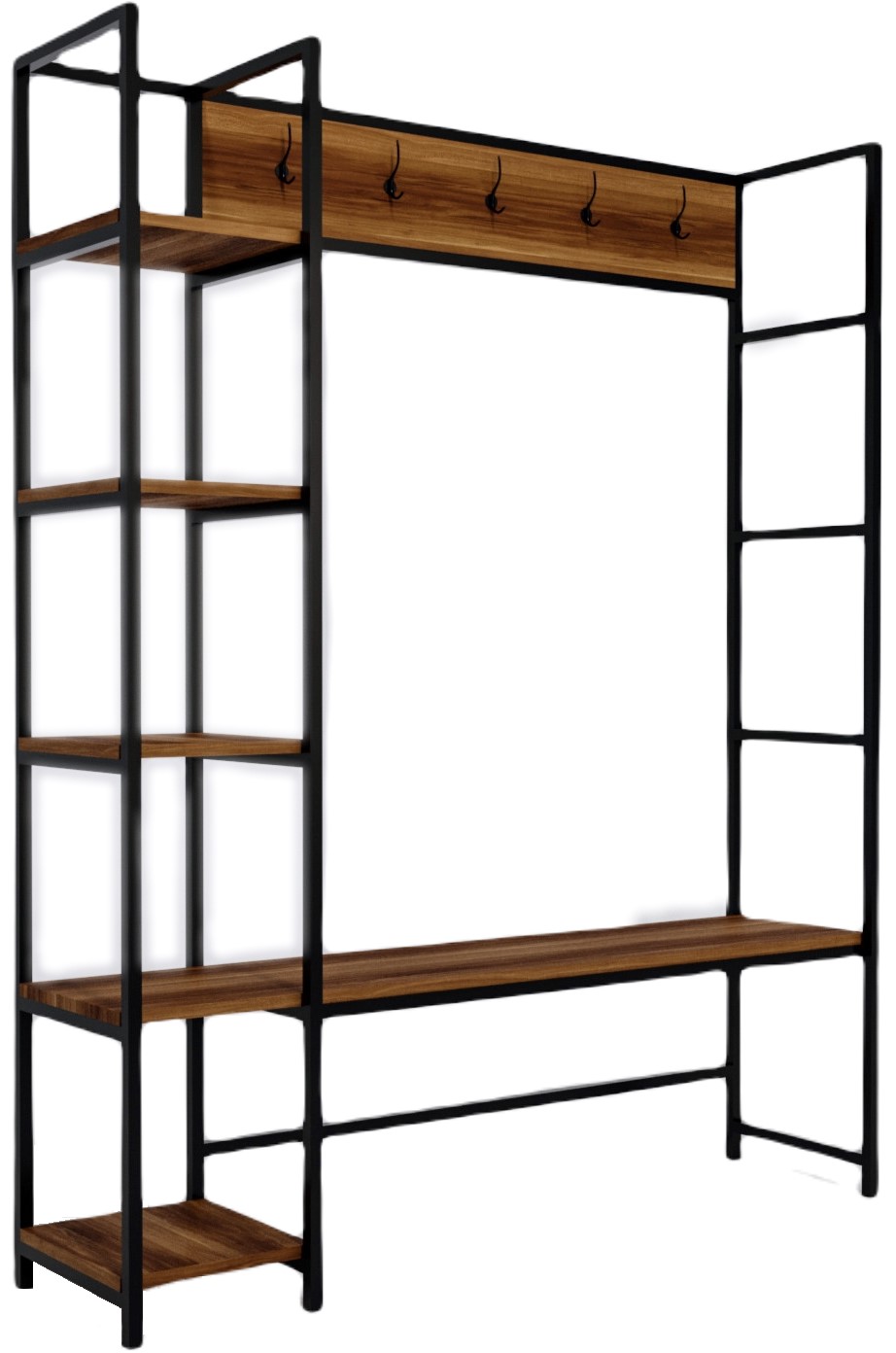 Hallmöbel av melaminbelagd spånskiva. Ben av metall.