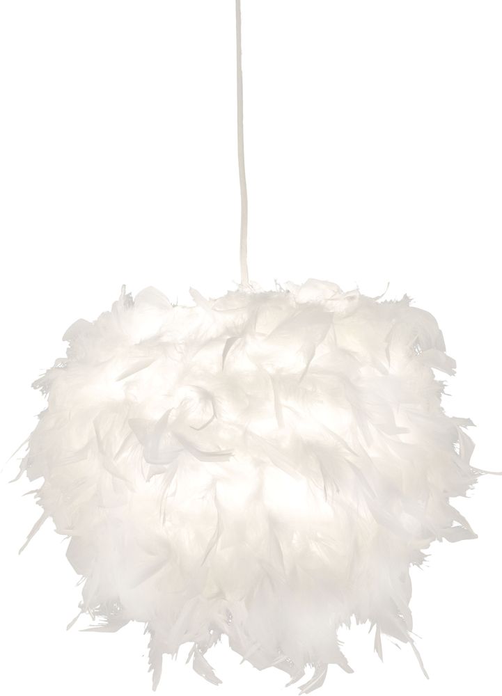 Taklampa gjord med vita fjädrar. Lätt att montera på plats i taket.