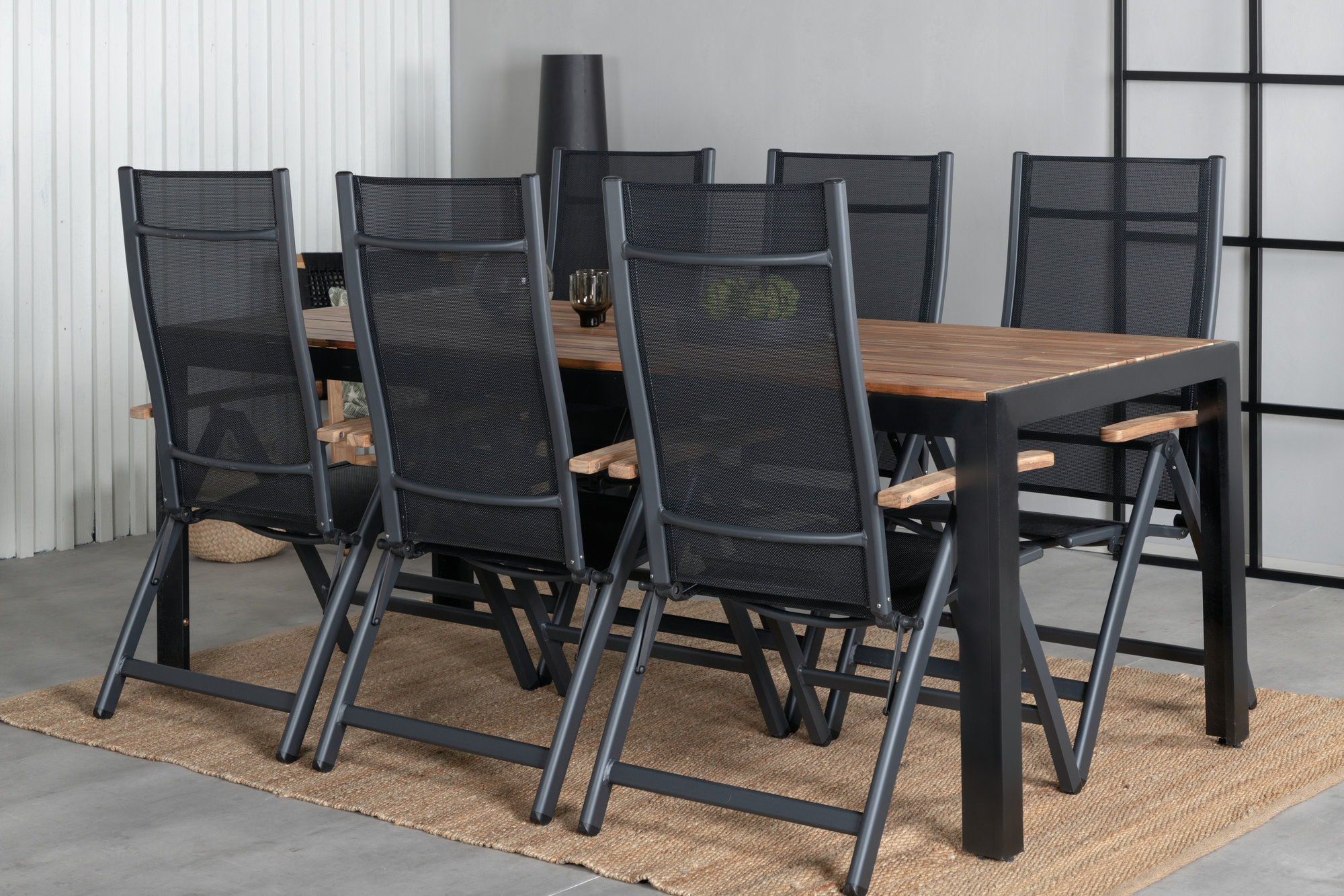 Bois utematgrupp med 6st Panama stolar - Svart/Natur