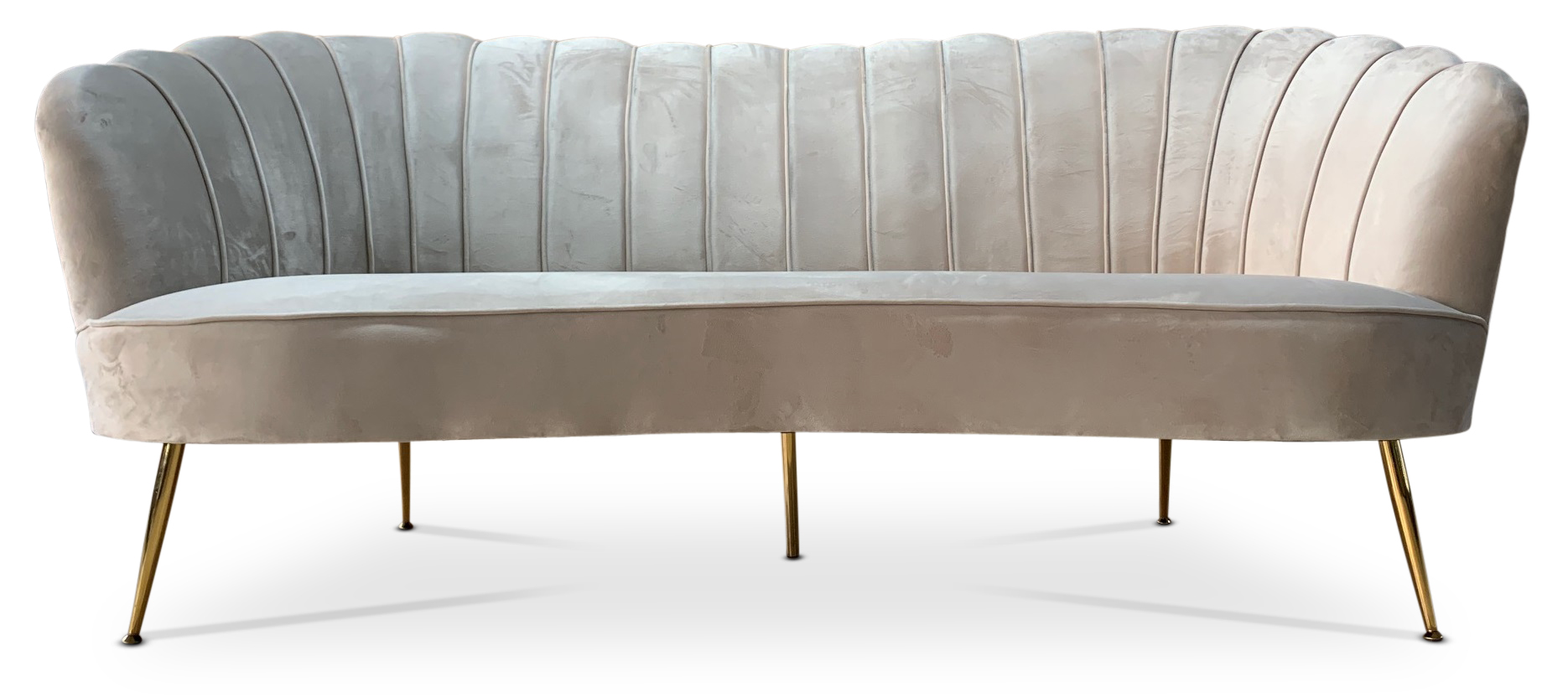 Soffan Snäcka är en stilig och bekväm 3-sits soffa, klädd med ett härligt gråbeige Velvet tyg. Ryggen liknar ett snäckskal. Snäckan finns i olika färger samt i fåtölj och 2-sits soffor.