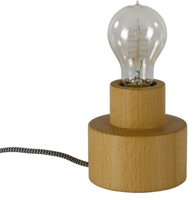 Bokeslund bordslampor finns i olika former. Lampfoten är i massiv bok. Strömbrytare på sladden. Tygsladd i svart och vitt mönster.