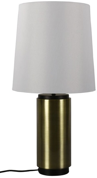 Bordslampa Tenvik i mässing med svarta detaljer och vit textilskärm.