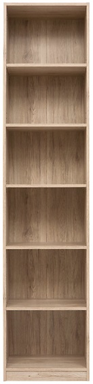 En öppen bokhylla i ekimitation. Hyllan har många hyllplan och är därför mycket rymlig. Eftersom den är så smal är den lättplacerad men kan med fördel kombineras med skåp eller fler bokhyllor i samma möbelserie för att få en ultimat förvaring på t.ex kontoret.