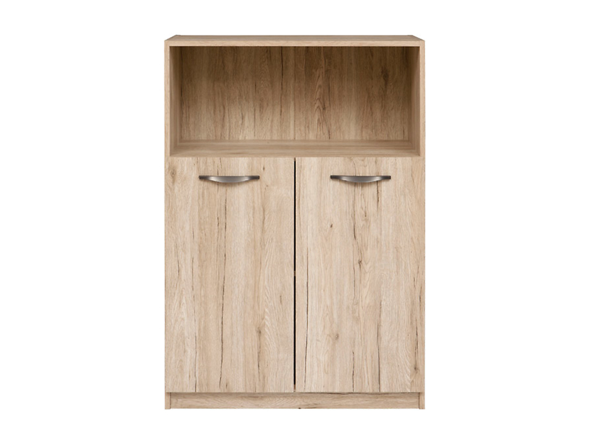 Ett fint skåp i ekimitaion. Med de två öppna facken har du snabbt tillgång till föremål som används dagligen. Inuti skåpet finns funktionella hyllplan som hjälper dig att hålla ordning och reda. Skåpet kan med fördel kombineras ihop med andra möbler ur samma möbelserie för att få den ultimata förvaringen på t.ex ditt kontor.