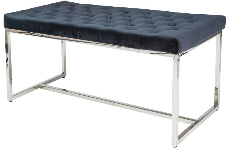 En snygg bänk med en stilren design. Bänkens underrede är tillverkat av kromad metall och själva sitsen är klädd med ett mycket behagligt sammet tyg för maximal lyx och komfort.