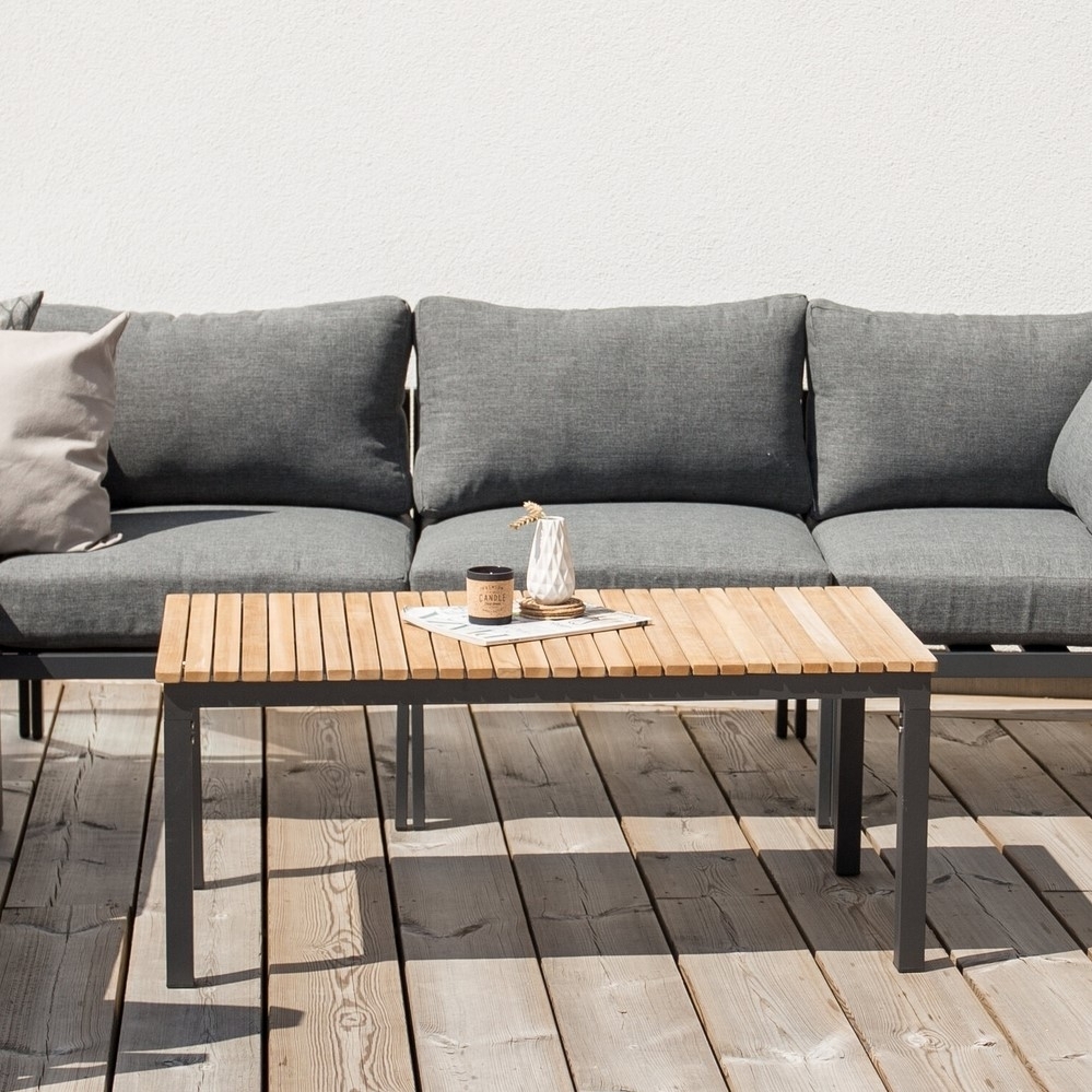 Skapa den perfekta utomhusoasen med vårt eleganta Brasillia soffbord! Med sina imponerande mått på 60 x 110 x 45 cm är detta soffbord den ultimata kompletteringen till din utomhussoffgrupp och ger dig en yta att både njuta av och avnjuta. Brasillia soffbord är tillverkat av aluminium och teak, vilket garanterar både hållbarhet och en tidlös estetik. Aluminium ger bordet en lättviktig och rostbeständig struktur som klarar alla väder, medan teakens naturliga skönhet och värme ger din utomhusmiljö en touch av elegans. Detta soffbord är mer än bara en praktisk yta att ställa saker på - det är ett konstverk i sig självt. Den moderna designen i kombination med materialvalen skapar en harmonisk och stilfull atmosfär. Njut av avslappnade stunder med familj och vänner i trädgården eller på terrassen med Brasillia soffbord. Skäm bort dig själv och ta din utomhusinredning till nästa nivå med Brasillia soffbordet. Skapa minnesvärda stunder utomhus med detta praktiska och samtidigt vackra möbelstycke. Gör din utomhusplats till en plats där du trivs och kopplar av i stil!