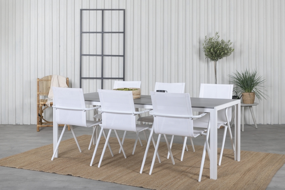 Break utematgrupp med 6 st Alina stolar - Grå/Vit