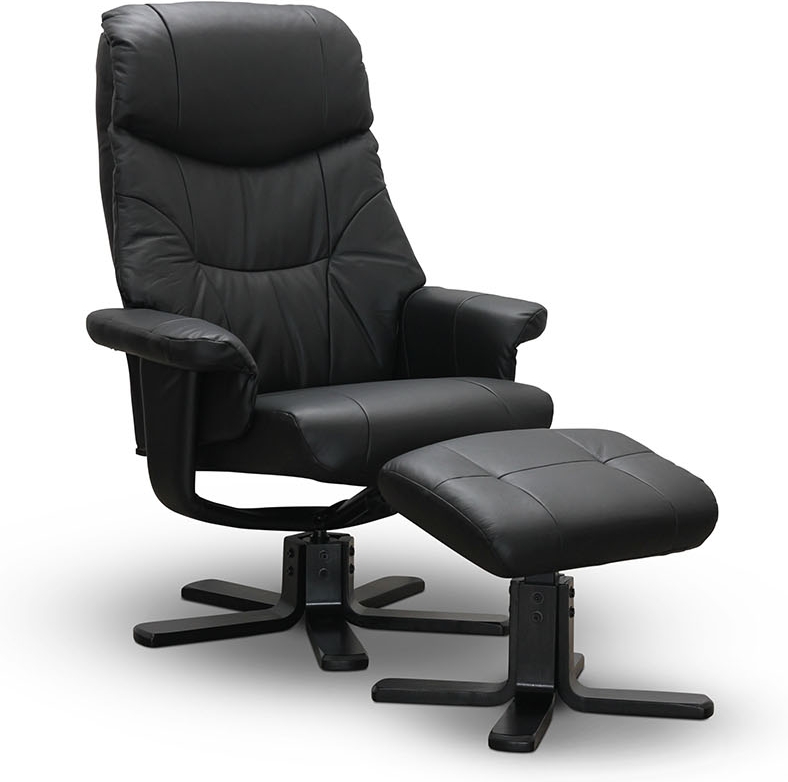 Bremen snurrfåtölj med fotpall - Svart läder/PU
