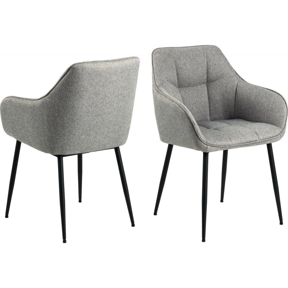 Karmstol med ben av pulverlackerad metall och klädsel av polyester.