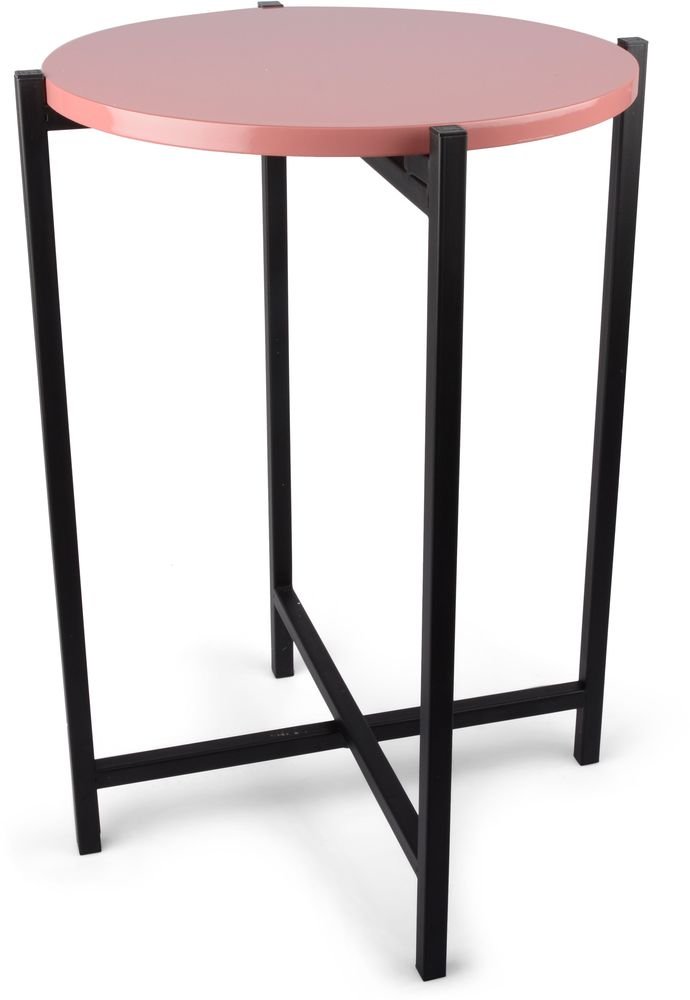 Ett snyggt och stilrent brickbord med svart metallunderrede och rosa bordsskiva.
