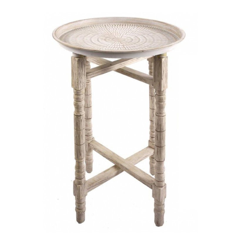 Brickbord i natur/grå med formade ben i trä och fat med elegant mönster. Extra högt, för dig som vill ha sakerna placerade högre upp.