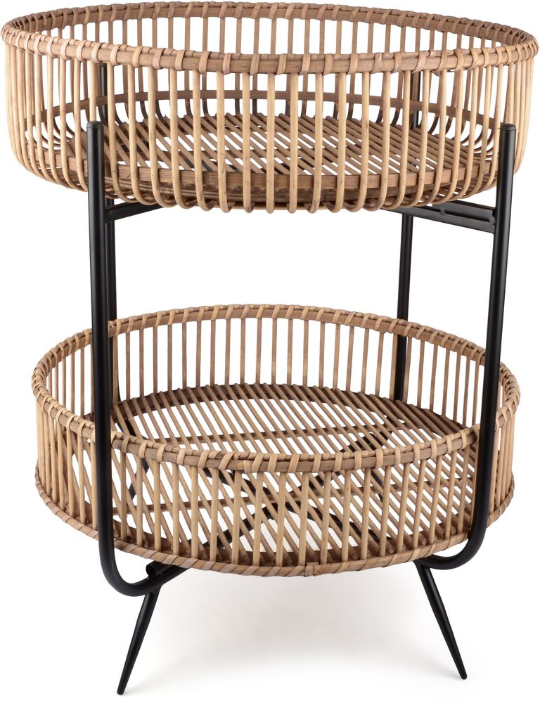 Ett snyggt brickbord med två bordsplan i naturligt bambu och underredet i svart metall.