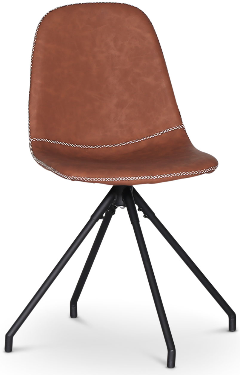 Bridge är en snurrbar stol med underrede av svart metall och klädsel av 100% vintage brun PU. Runt stolen löper en ljussöm som en dekorativ och utstickande detalj.